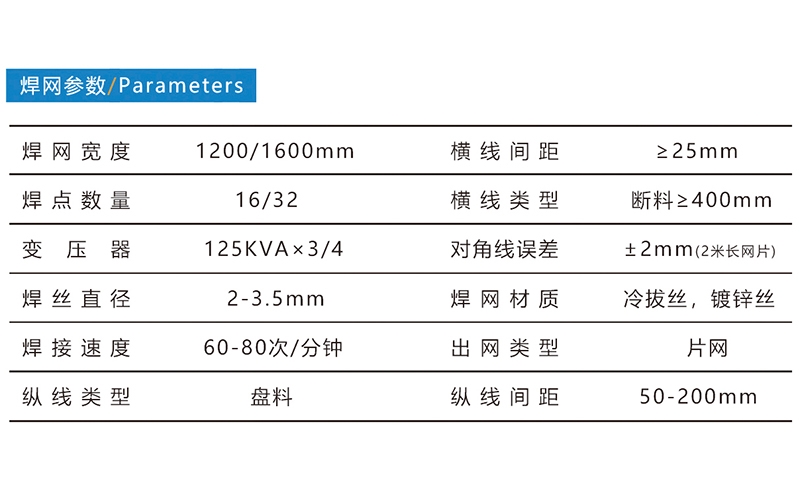 養(yǎng)殖網焊接生產線, 焊接網寬度1200mm/1600mm,焊接絲徑2-3.5mm,焊接速度為60-80次/分鐘,橫線為斷料,縱線為盤料。標準配置:放線盤、主機、料斗、拉網、剪板機、落網小車。可選配置:橫線切角、單點(或斜絲)補焊機、分條機、縱線檢測裝置、無毛邊剪網、擺絲裝置、短絲補焊裝置、校直輪+校直輪架。河北驕陽焊工有限公司,0318-7063097