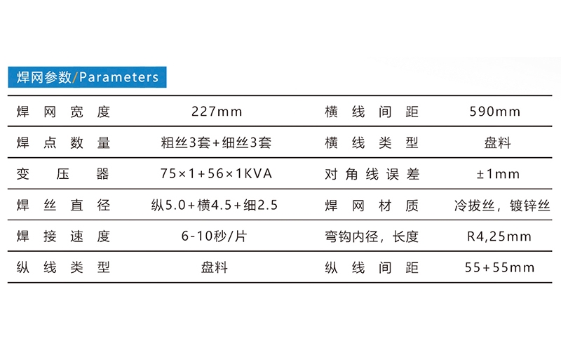 養(yǎng)殖網(wǎng)上提籠門焊接生產(chǎn)線,焊網(wǎng)寬度227mm,焊接絲徑5.0+4.5+2.5mm,焊接速度為6-10秒/片,橫線縱線均為盤料。標(biāo)準(zhǔn)配置:放線盤、主機(jī)、自動(dòng)折彎、自動(dòng)剪網(wǎng)、接網(wǎng)架。河北驕陽焊工有限公司,0318-7063097